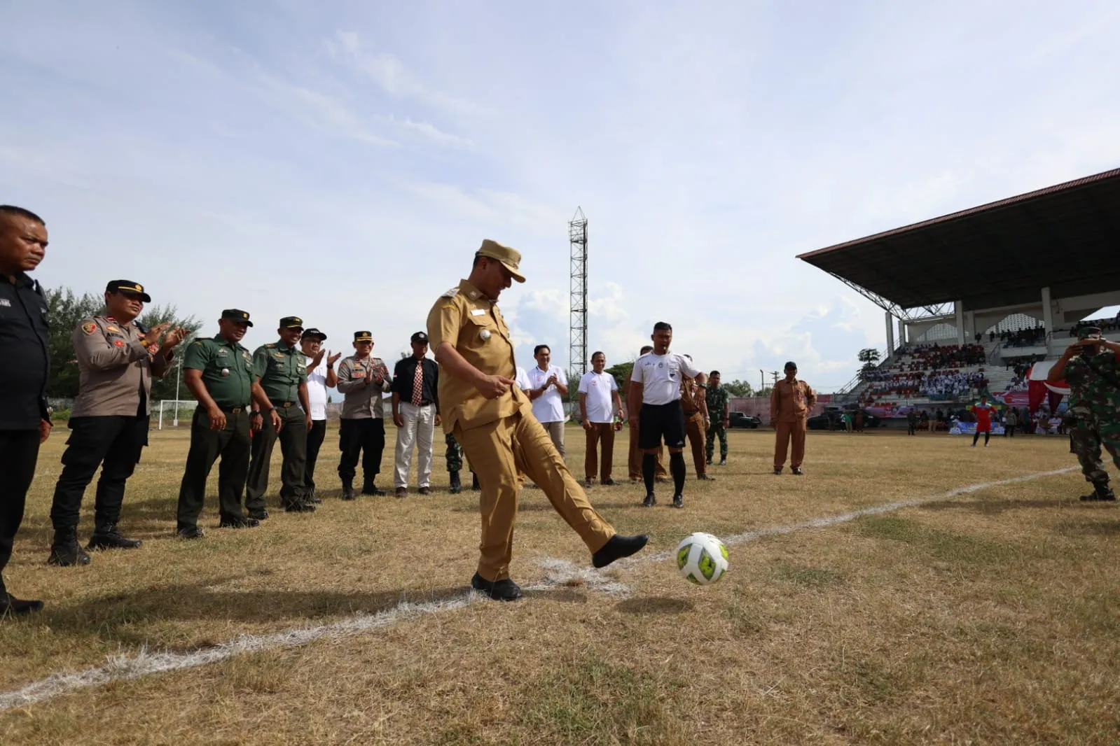 PJ walikota Lhokseumawe Dr Imran Melakukan tendangan pertama tanda turnamen dimulai |