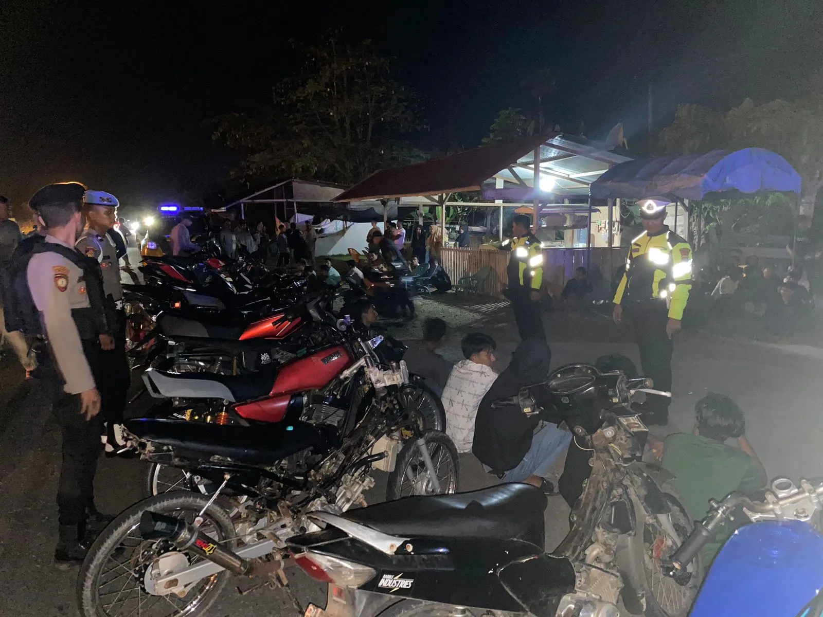 Tim gabungan Polres Aceh Utara menggalangkan aksi balap liar di kawasan Jalan Line PT PGE Gampong Nibong Baroh Kecamatan Nibong, Aceh Utara, Selasa dini hari (28/3/2023).