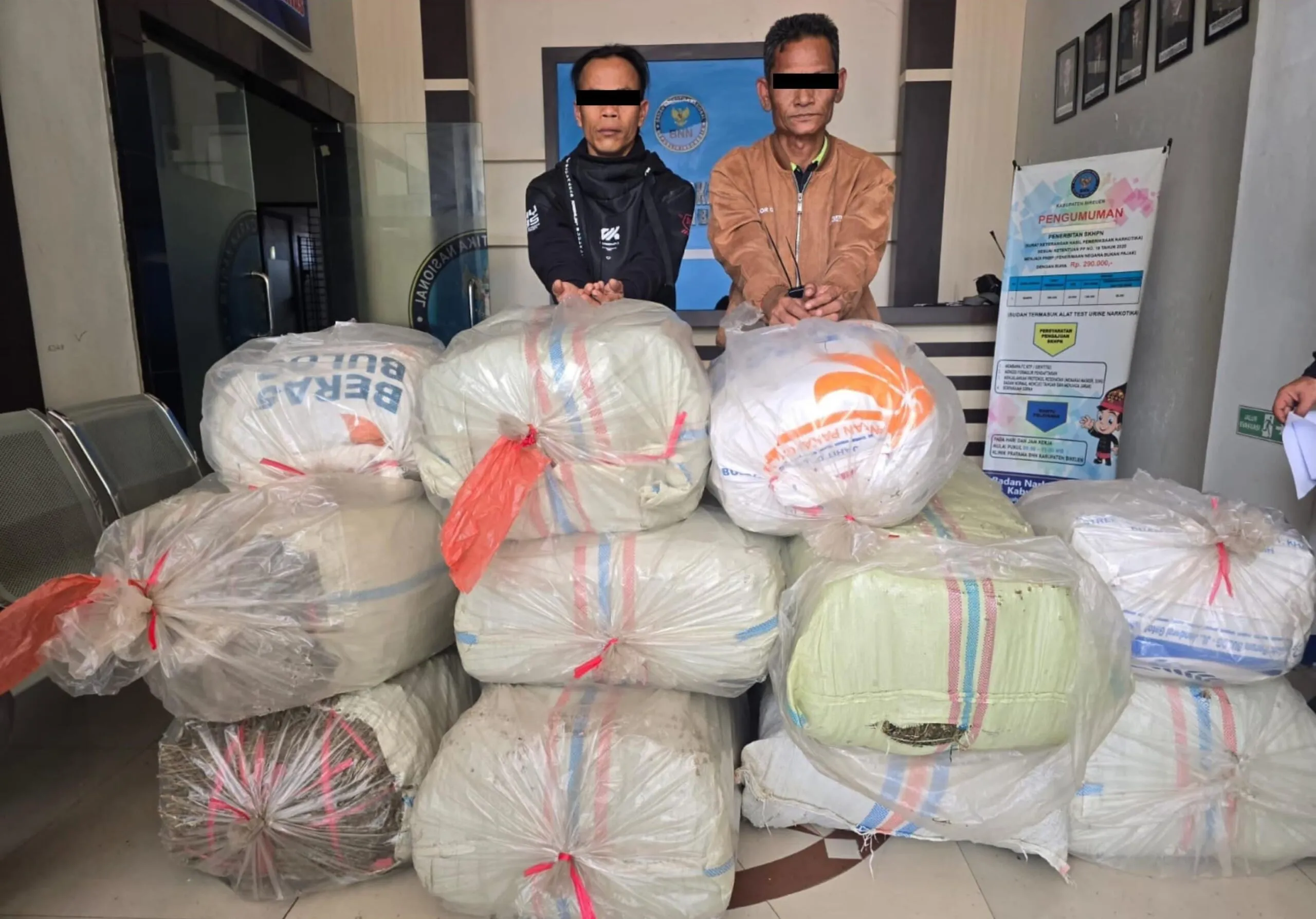 yang membawa 184,8 kg ganja dalam 11 karung. Dua tersangka, yakni UC (50) asal