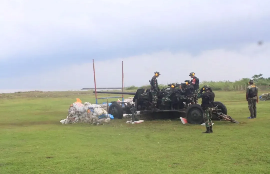 Danlanal Lhokseumawe Dukung Latihan Menembak Senjata Berat Arhanud di Pantai Kuala Cangkoi |