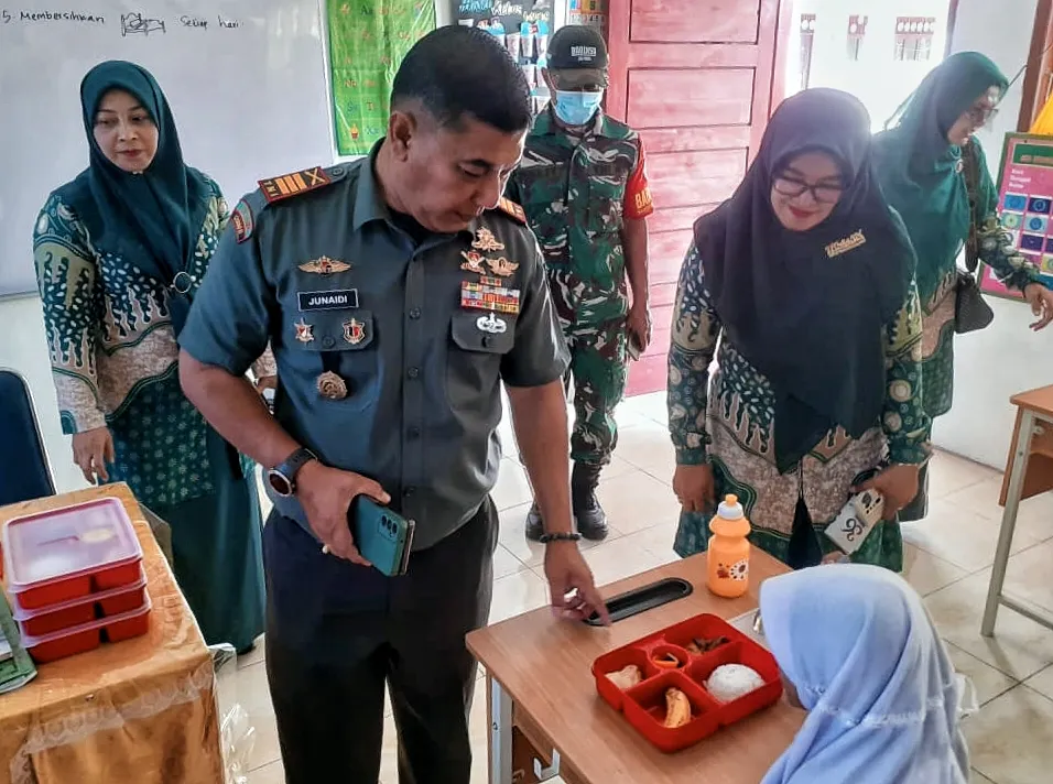 Danramil 16 Banda Sakti Pantau Langsung Pemberian Makanan Bergizi di Sekolah-sekolah |