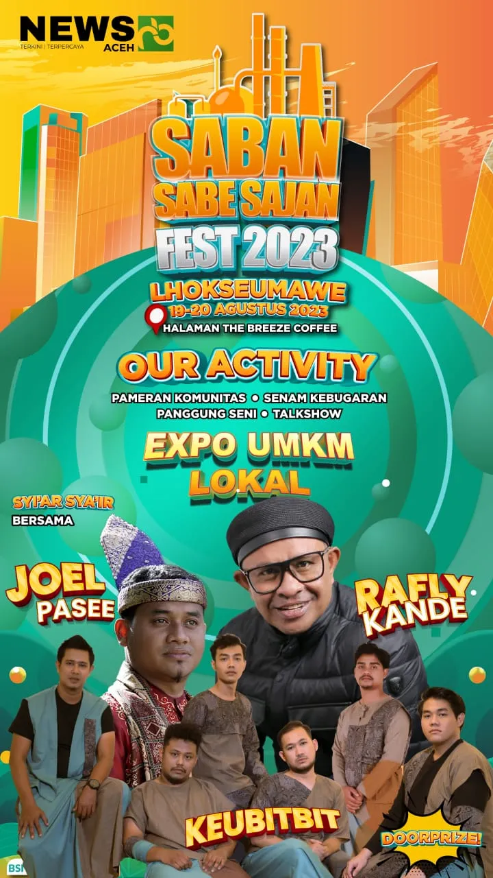 Newsrbaceh.com | LHOKSEUMAWE – Pasca Pelaksanaan Event Saban Sabe Sajan Fest 2023 di Banda Aceh pekan lalu, Lentera Muda Karya (Lemka) Foundation berkolaborasi dengan PT Bank Syariah Indonesia Tbk (BSI) akan menggelar event lanjutan Saban Sabee Sajan Fest 2023 pada 19-20 Agustus 2023, di Halaman The Breeze Coffee, Lhokseumawe.