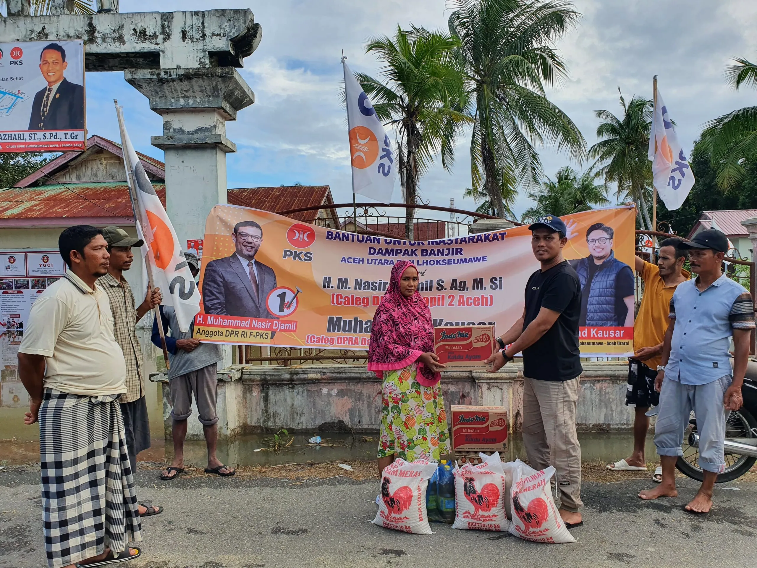 Newsrbaceh.com | ACEH UTARA – Anggota Dewan Perwakilan Rakyat (DPR) RI H Muhammad Nasir Djamil dari Partai Keadilan Sejahtera (PKS) bersama staf ahlinya, Muhammad Kausar, menyalurkan bantuan untuk korban banjir di kawasan Lhokseumawe dan Aceh Utara, Selasa, 26 Desember 2023.