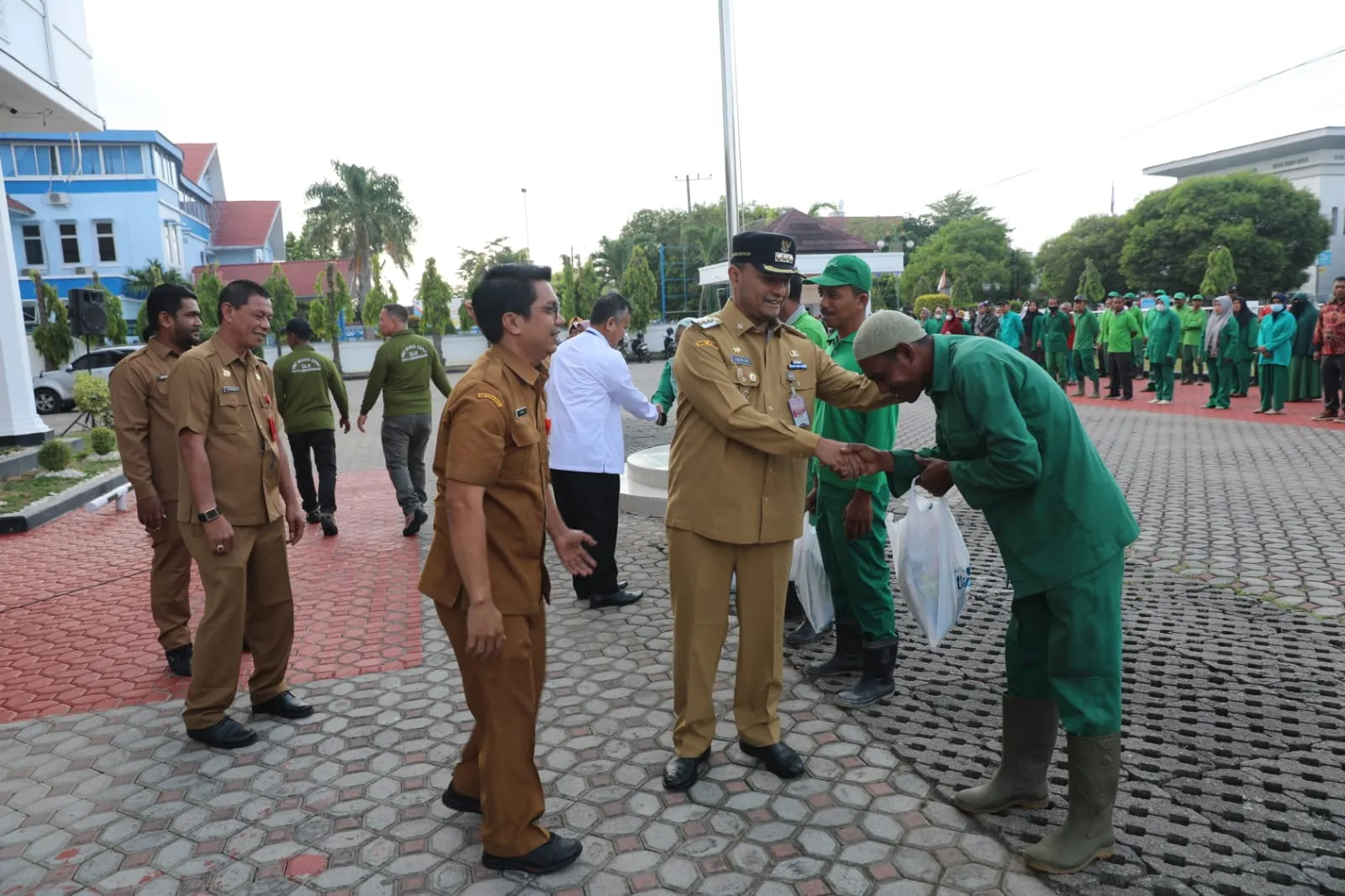 Pada kesempatan tersebut juga Pj Walikota menyampaikan maaf lahir batin kepada seluruh pekerja kebersihan.