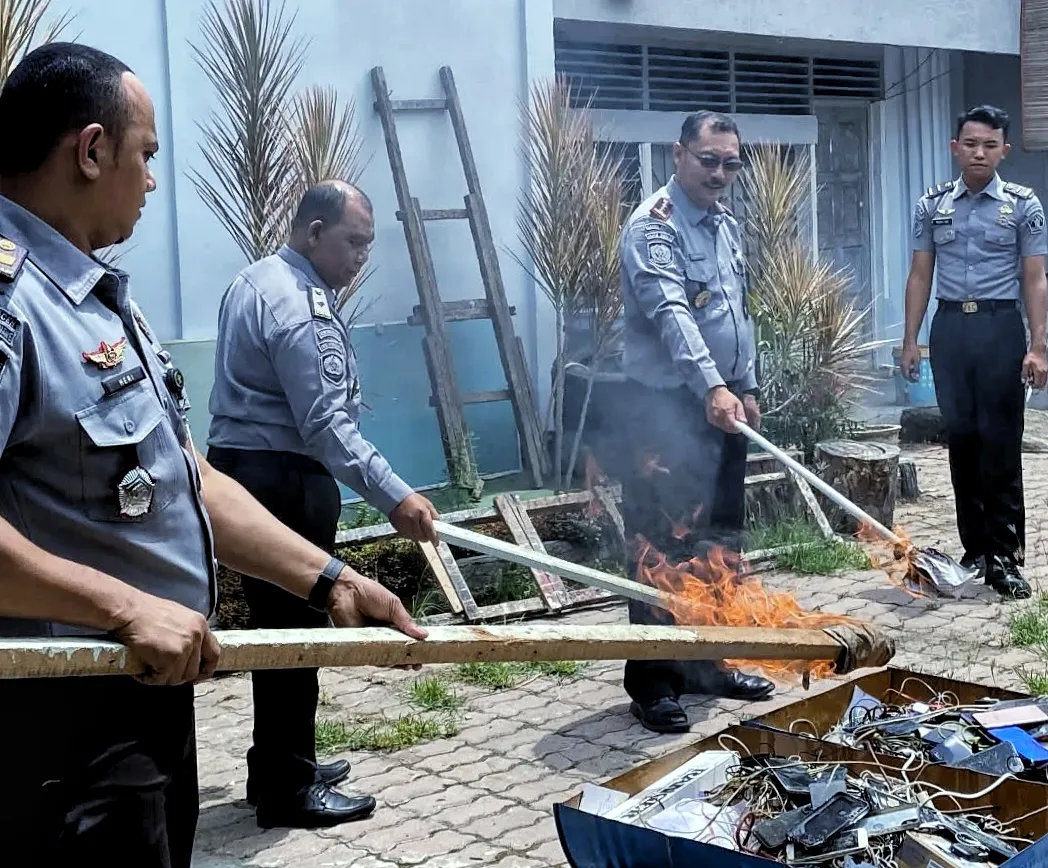 Lapas Lhokseumawe Musnahkan Barang Terlarang Hasil Razia di Blok Hunian |