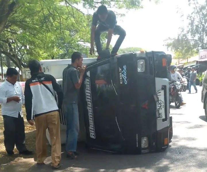 kerusakan akibat terguling. Kejadian ini sempat menarik perhatian warga