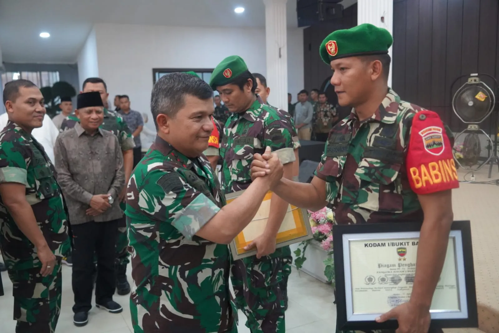 Newsrbaceh.com | Asahan – Panglima Kodam (Pangdam) I/Bukit Barisan Mayjen TNI A. Daniel Chardin, SE, MSi, beserta jajarannya melakukan Safari Ramadhan sekaligus acara syukuran HUT Ke-71 Kopassus di Pendopo Bupati Asahan, Rabu (19/04/2023).