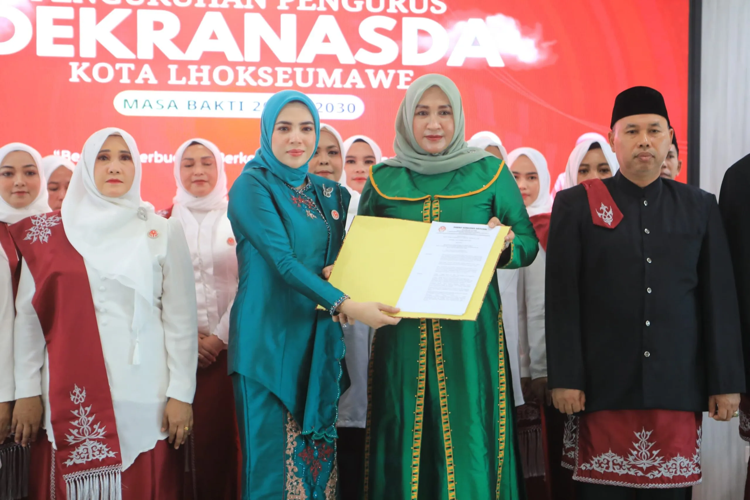 Yulinda Sayuti, secara resmi mengukuhkan Pengurus Dekranasda Kota Lhokseumawe