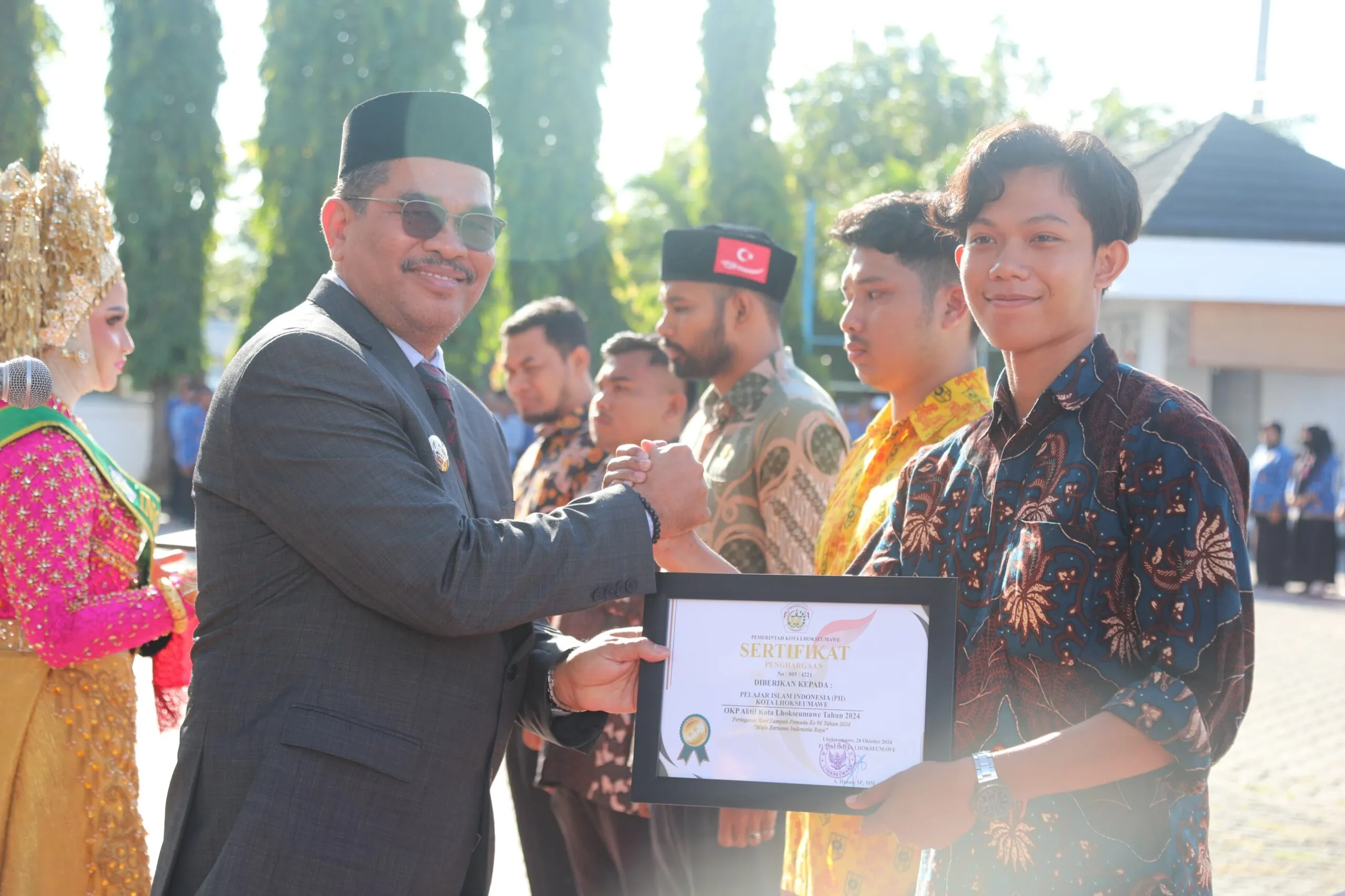 Acara ini berlangsung dalam Upacara Peringatan Sumpah Pemuda Ke-96 di Halaman Setdako Lhokseumawe, Senin, (28/10).