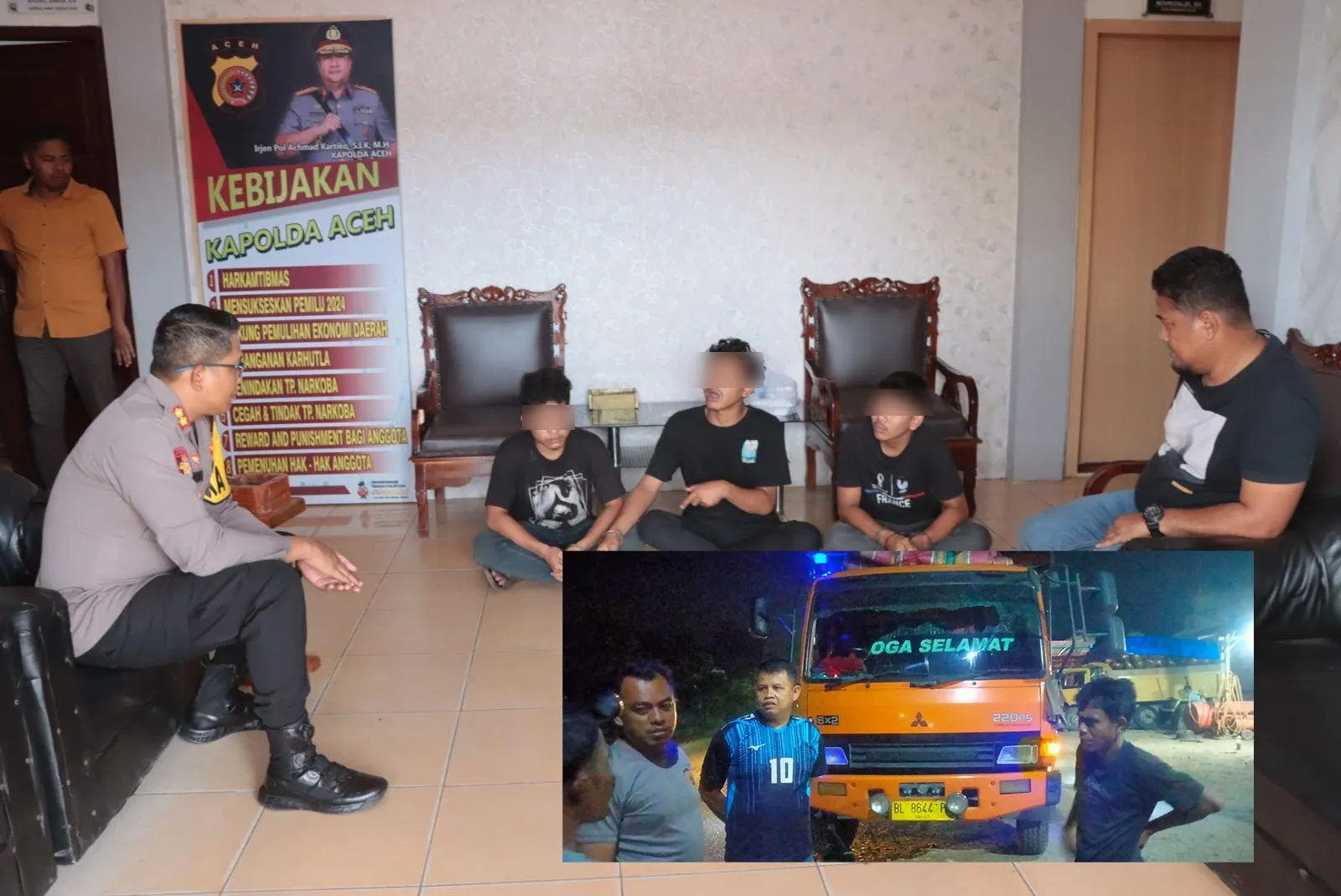 Kapolres Aceh Utara AKBP Nanang Indra Bakti, S.H., S.I.K Melakukan introgasi kepada tiga pelaku pelemparan mobil |