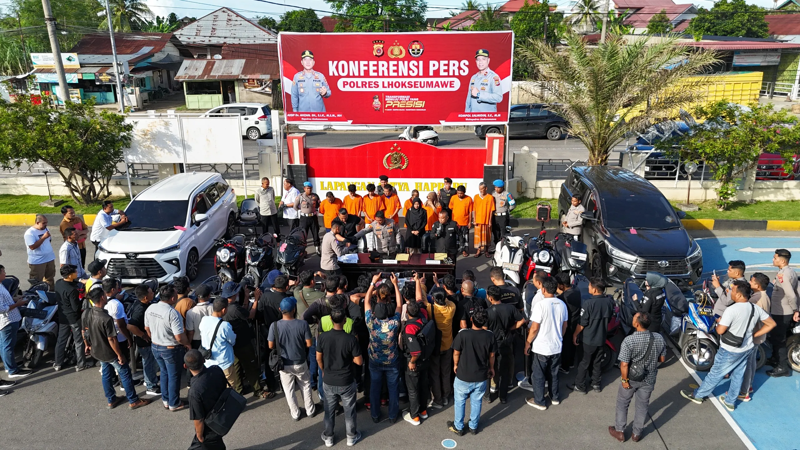 Lhokseumawe – Polres Lhokseumawe menggelar konferensi pers pengungkapan tiga