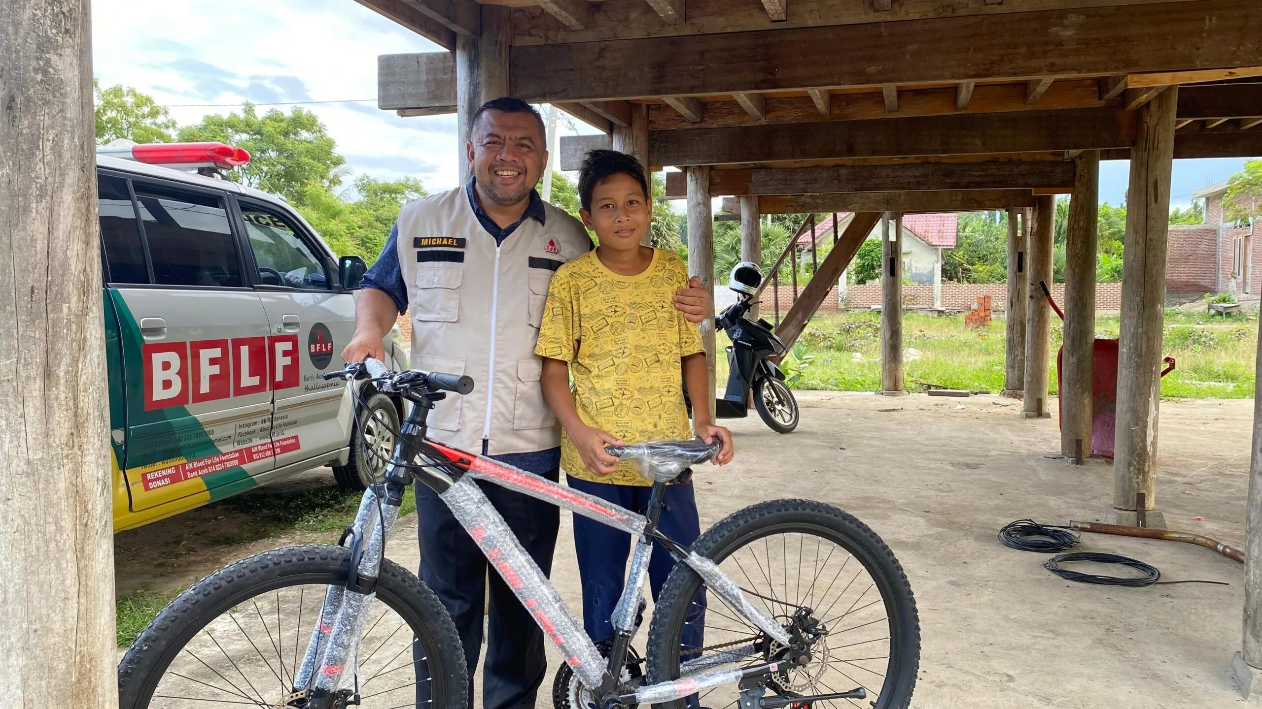 Aceh Besar itu tak menyangka akan menerima sepeda gratis dari BFLF Indonesia.