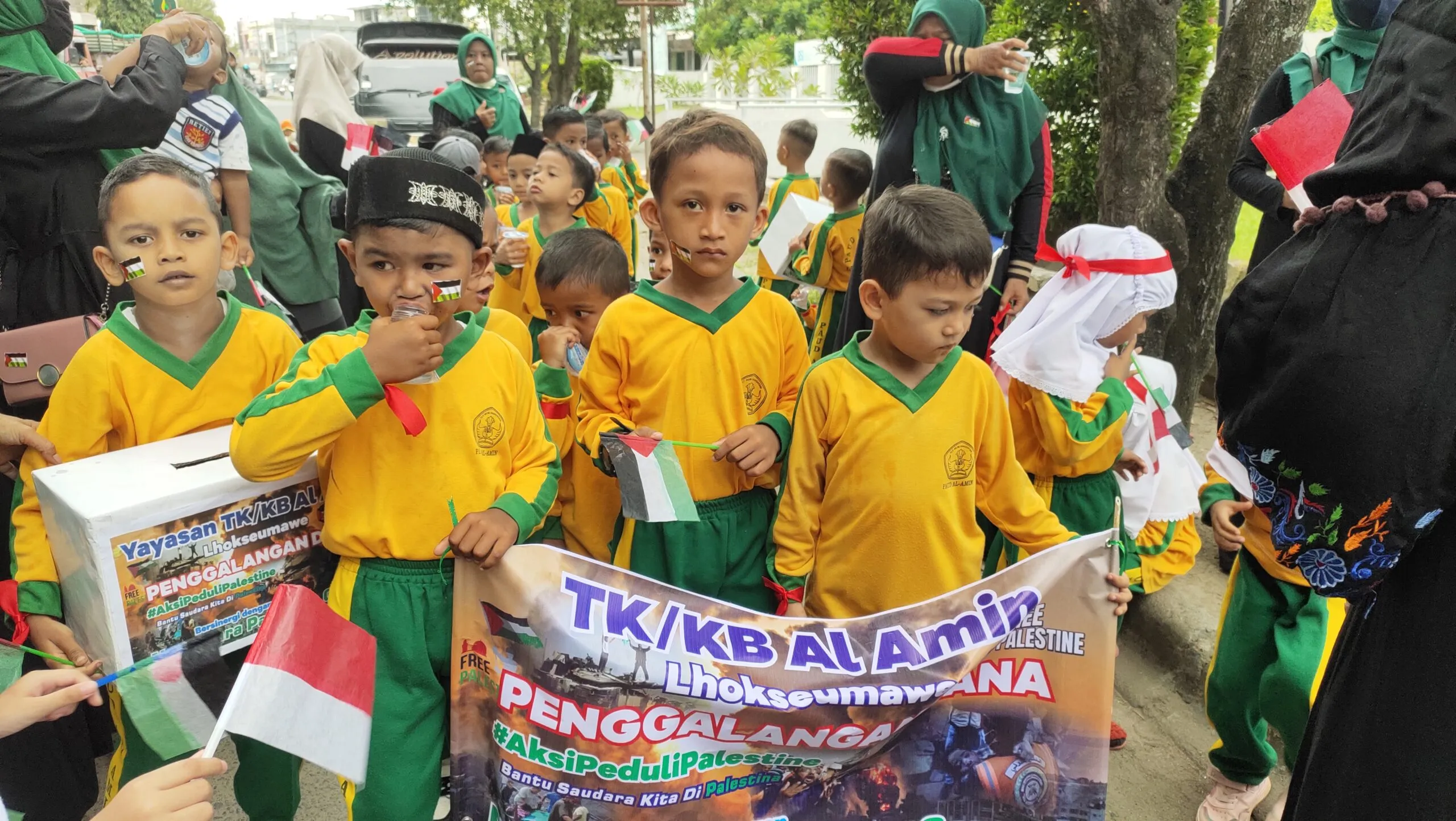 Newsrbaceh.com | Lhokseumawe – Dalam sebuah aksi yang penuh semangat, para pelajar dari Taman Kanak-kanak (TK) Al Amin di Lhokseumawe, Aceh, telah mengambil langkah luar biasa untuk mendukung Palestina. Rabu, 8 November 2023.