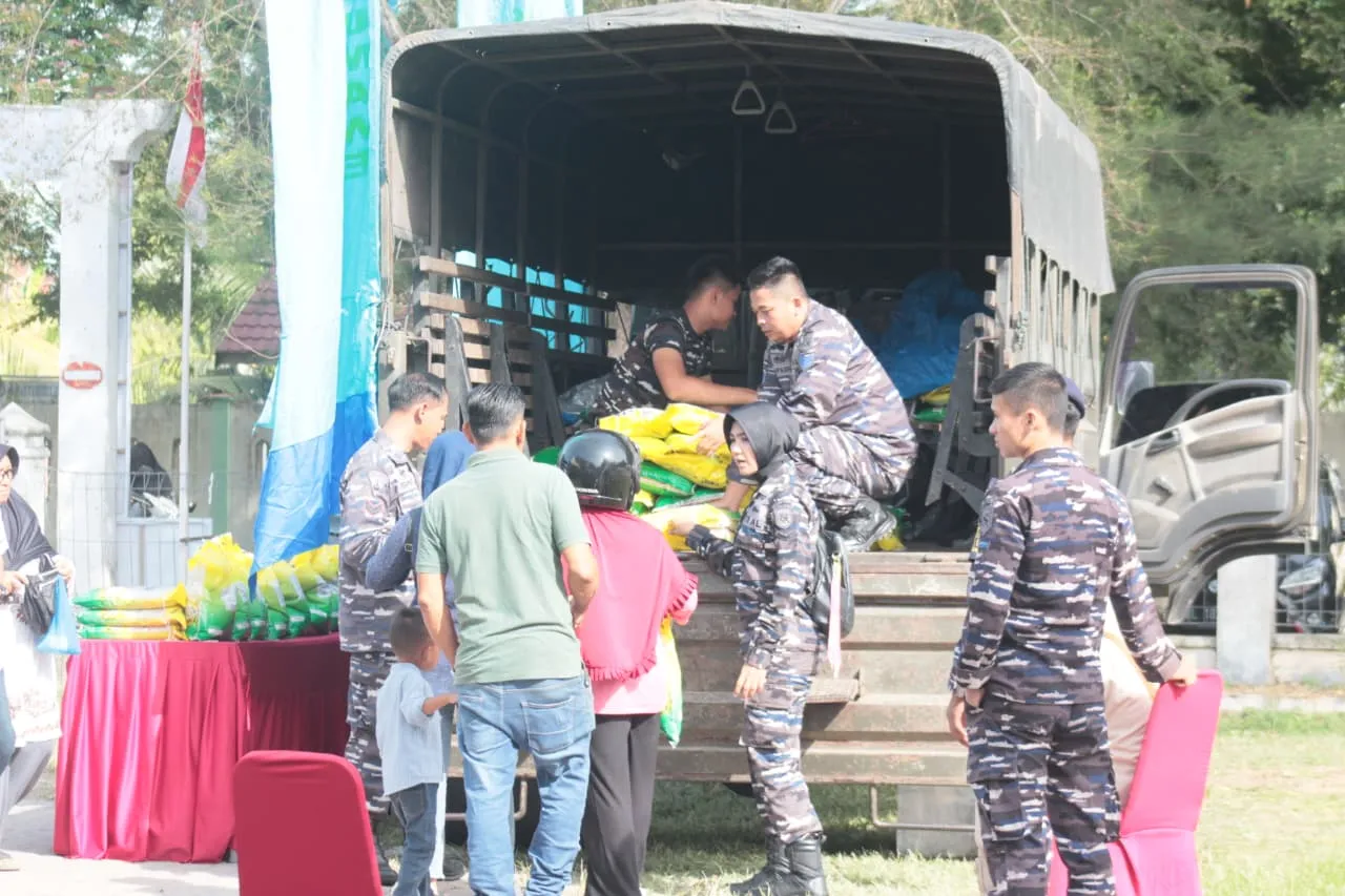 TNI AL Lanal Lhokseumawe Dukung Gerakan Pangan Murah di Muara Satu, Warga Antusias |